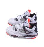 The Jordan 4 Retro Flight Nostalgia, released in March of 2019, also known as the "Jordan 4 White Light Crimson," brings a vibrant twist to the classic silhouette. It features a white leather upper with black detailing and bold hits of light crimson on the eyelets, tongue lining, and outsole. Subtle grey accents on the midsole and outsole give it a balanced finish. The mix of bright and neutral tones adds a fresh, energetic vibe to the design
