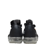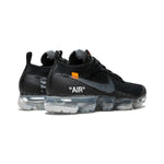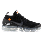The Nike Air VaporMax Off-White Black (2018), released on March 30, 2018, is a collaboration between Nike and Virgil Abloh as part of "The Ten" collection. This version of the Air VaporMax features a black Flyknit upper with exposed foam detailing, an oversized white stitched Swoosh, and vivid Total Crimson accents for a bold contrast. The translucent, clear VaporMax sole provides a distinctive look while ensuring lightweight, responsive cushioning. Signature touches include Abloh's red zip tie, "AIR" text on the midsole, and the signature quotation mark motif on the laces and side panels. Known for its fusion of cutting-edge technology and high-fashion elements, this sneaker has become one of the most iconic releases in the collection.