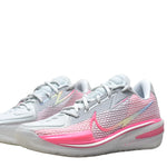The Nike Air Zoom GT Cut "Think Pink" is a limited-edition basketball sneaker developed in collaboration with the Kay Yow Cancer Fund to raise awareness for breast cancer. Released on February 22, 2022, this model features a lightweight white mesh and neoprene upper with pink and grey highlights. On the lateral side, the sneaker boasts a TPU-bordered Swoosh, while the medial side is adorned with a vibrant, multicolored Swoosh in blue, yellow, and pink. The shoes also feature mismatched 'GT' and Kay Yow logos, with each shoe representing a different brand. A white midsole with pink speckles and a gum rubber outsole round off the design. Additionally, the sneaker is built with a full-length React drop-in sole, a parabolic Air Zoom Strobel, and an Air Zoom unit in the heel to ensure responsive cushioning.