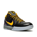 The Nike Kobe 4 Protro "Carpe Diem" returned in June 2019, bringing back a fan-favorite colorway inspired by Kobe's "seize the day" mindset. It features a black upper with yellow and purple accents, a yellow Swoosh outlined in purple, a grey midsole, and a blue outsole. Blending bold Lakers colors with updated Protro tech, this release honors Kobe's legacy both in style and performance.