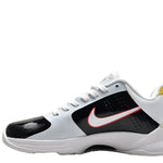 The Nike Kobe V Protro Bruce Lee Alternate, released on November 24, 2020, offers a fresh twist on the iconic design. Featuring black and white paneling on the upper, the shoe is accented with red outlining the Swoosh and scratch marks on the lateral side, paying tribute to Enter the Dragon.Equipped with a white and black Zoom sole, yellow heel cushioning, and silver Kobe branding on the tongue, this alternate version celebrates both style and performance.