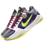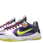 The Nike Kobe 5 Protro Chaos, re-released in December 2019, draws inspiration from Heath Ledger's Joker in The Dark Knight. As part of the Protro series, this version features updated technology and materials for enhanced performance.The design includes a chameleon FlyWire upper with white and charcoal overlays, a white midsole with red speckles, and a lime green outsole and Swoosh.