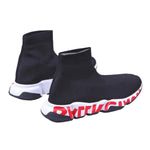 The Balenciaga Graffiti Speed Red Sole blends avant-garde design with street-style edge. This sneaker features a sleek black stretch-knit upper that provides a snug, sock-like fit for optimal comfort and breathability.The standout feature is the bold graffiti-style Balenciaga branding wrapped around the vibrant red sculpted sole, adding a rebellious touch to the minimalist silhouette. Completed with a durable rubber outsole for reliable traction, this shoe is perfect for those who want to make a statement while embracing the fusion of luxury fashion and urban art.