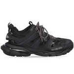 The Balenciaga Track Black is a standout addition to the brand's women's sports collection. Crafted from a mix of mesh and nylon, this sneaker features a sleek all-black upper with contrasting white extra laces. The shoe is marked with the size on the edge of the toe, while "Track" branding appears at the back and "Balenciaga" is embossed on the tongue and exterior.Designed with a distinctive sole that includes an augmented back, the Track Black combines bold style with functional innovation. Released on September 3rd, 2018, this sneaker is a striking blend of performance and luxury.