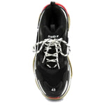 The Balenciaga Triple S Black White Red brought a bold new look to sneakers with its oversized silhouette and striking mix of black, white, and red. First released on September 21, 2017, this sneaker helped define the chunky "dad shoe" trend. Its layered sole design, pre-distressed detailing, and mix of mesh, leather, and suede give it both a retro vibe and modern edge. Standout elements include Balenciaga branding on the side, an athletic lacing system, and a distinctive triple-stacked midsole that ensures comfort and height. This colorway quickly became a favorite for fashion-forward individuals looking to make a statement with every step.