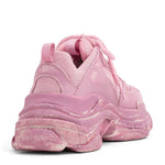 The Balenciaga Triple S Faded Pink offers a fresh take on the iconic chunky sneaker silhouette. Released on September 16, 2021, this model features a pink and white colorway with a distressed, faded effect that adds a unique character to its design. The upper combines mesh and synthetic materials, ensuring both breathability and durability."‹Key details include the signature triple-stacked sole for enhanced cushioning, bi-color hiking-inspired laces, and subtle branding on the lateral side, tongue, and heel. The Balenciaga Triple S Faded Pink seamlessly blends high-fashion aesthetics with streetwear sensibility, making it a standout addition to any sneaker collection
