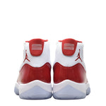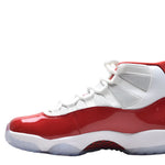 The Air Jordan 11 Cherry brings a bold Chicago-inspired colorway to the iconic silhouette. The sneaker features Cherry red patent leather mudguards that wrap around the upper, complemented by white leather and a matching Cherry red Jumpman. The interior boasts Cherry red cotton lining, with the signature 23 debossed on the heel tab. To complete the look, an icy blue outsole and a Cherry red carbon fiber plate are added. The Air Jordan 11 Cherry was released on December 10, 2022 .