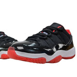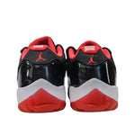 The Air Jordan 11 Retro Low Bred, released in May 23, 2015, is a low-top rendition of one of the most beloved colorways in the Jordan lineup. Dressed in a classic combination of black, red, and white, the sneaker features a black mesh and leather upper, highlighted by a red semi-translucent mudguard for a striking contrast. A crimson Jumpman logo adorns the collar lining and tongue, while the number 23 is stitched on the lateral collar. Underfoot, the shoe includes a full-length AIR unit encased in a Phylon midsole for responsive cushioning, along with a carbon fiber plate that enhances stability. The True Red interior and detailed design elements make this pair a standout.