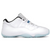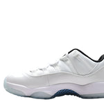 The Air Jordan 11 Low Legend Blue takes inspiration from the iconic 1996 All-Star Game sneaker, where Michael Jordan debuted the original Legend Blue 11. This updated 2021 version features an all-white upper made from smooth leather and patent leather, with the classic Jumpman logo and "23" insignia on the ankle. A white midsole and a translucent "icy" blue outsole add the finishing touches to the design. The Air Jordan 11 Low Legend Blue was released in May of 2021.