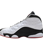 The Jordan 13 Retro "He Got Game" is inspired by the pair worn by Denzel Washington in the 1998 film, where his character faces off against his son, played by Ray Allen. The sneaker features a white and black leather upper, a green hologram on the side panel, and a red-and-white outsole, all nodding to the iconic design.Released in August 2018, this version of the Jordan 13 blends premium leather with reflective details, offering a timeless style that celebrates both basketball and film history.