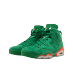 The Air Jordan 6 Retro Gatorade Green draws inspiration from the iconic Gatorade brand, blending the bold colors of pine green and electric red. The upper is crafted from Gatorade Green Durabuck with perforated suede for added texture and style. The tongue, midsole, and heel tab are finished in vibrant Electric Red, providing a striking contrast to the green. The sneaker is completed with a milky, translucent green outsole and features a supportive AIR unit sole technology for comfort and durability. Released on December 30, 2017, the Air Jordan 6 Retro Gatorade Gree is making it a standout release for sneaker enthusiasts.