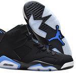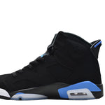 The Air Jordan 6 Retro "UNC" pays tribute to Michael Jordan's alma mater, the University of North Carolina, with a colorway inspired by the Tar Heels. This edition features a black nubuck upper with University Blue accents, replacing the traditional infrared for a fresh, collegiate-inspired look. The shoe is complemented by blue branding details and icy blue translucent hits on the outsole, giving it a sleek and sporty vibe. Released as a holiday drop on December 2017, the Jordan 6 Retro "UNC" has full-family sizing available down to toddler sizes. A fan favorite from the start, this release became an instant classic, and as the years pass, it's expected to become even more sought after. If you're looking to grab a pair or sell one, now is the perfect time to check out the marketplace.