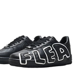 The Nike Air Force 1 Low Cactus Plant Flea Market Black features a sleek all-black design with subtle white accents. This collaboration with the Los Angeles streetwear brand brings a modern twist to the classic AF1, with a leather upper and bold reflective details.Inspired by the Nike Air More Uptempo, the right shoe displays the word "AIR" outlined in reflective elements, while the left shoe showcases "FLEA." Released on September 10, 2020, this versatile sneaker offers a unique yet stylish look, perfect for various outfits.