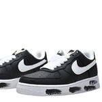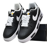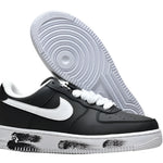 The Nike Air Force 1 PEACEMINUSONE Para-noise collaboration with K-pop icon G-Dragon showcases a unique design with a black upper coated in lacquer that wears off over time to reveal hidden artwork. The PEACEMINUSONE Daisy logo is embroidered on the tongue, while black paint streaks embellish the sides and sole. White overlays and laces complete the bold look.Released on November 23, 2019, this limited-edition sneaker came with extra laces, eyelet pins, and black hangtags. It was released globally in the black/white colorway, with a Korea-exclusive black/red variant.