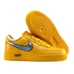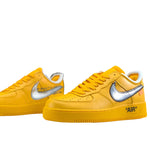 Released on July 10, 2021, the Nike Air Force 1 Off-White University Gold was designed to celebrate Virgil Abloh's Figures of Speech exhibition at ICA Boston. This bold collaboration features a University Gold leather upper with Metallic Silver Swooshes, orange tab accents, and Off-White's signature design elements.Exposed foam on the tongue and collar, “AIR- text on the midsole, and the iconic zip-tie tag reflect Abloh's deconstructed aesthetic. This release blends high-impact visuals with conceptual design, making it a standout in the Off-White x Nike collection.