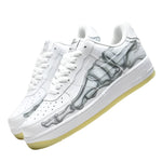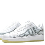 The Nike Air Force 1 Low Skeleton Halloween is the ideal sneaker to complete your Halloween look. It features a crisp white upper with grey accents, a white midsole, and a translucent outsole, giving it a fresh yet eerie appearance.Released on October 31, 2018, this spooky design blends classic style with a Halloween twist. It's the perfect way to add a touch of Halloween spirit to your sneaker collection.