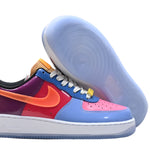 The Nike Air Force 1 Low Undefeated Multi Patent, released on December 9, 2022, features a striking patchwork design with a glossy finish. The upper is constructed from patent leather in vibrant hues of blue, fuchsia, crimson, purple, and black. It also showcases a laser-engraved Nike Air logo on the heel, an embroidered orange Swoosh, and Undefeated's signature Five Strikes logo on the heel and tongue.This low-top sneaker rests on a white midsole with Air-sole cushioning and is completed with a translucent rubber outsole for durability. The Undefeated Multi Patent offers a bold and colorful twist on the classic Air Force 1 design.