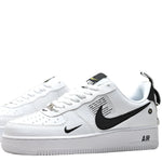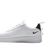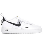 The Nike Air Force 1 Low Utility White Black released on October 1, 2018 reimagines the classic AF1 with bold branding and modern design elements. Part of the LV8 Utility Pack, it features a white textured leather upper contrasted by black Swooshes, mini Swooshes with "TM" branding, and a unique exposed label on the lateral side.Tour Yellow accents highlight the extended heel pull tab, while signature details like the "AIR" midsole branding and a clean white sole round out the look.
