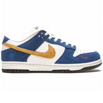 The Nike Dunk Low Kasina Industrial Blue is the result of a collaboration between South Korean streetwear label Kasina and Nike. Released as part of a two-colorway collaboration, the Dunk Low Kasina Industrial Blue draws inspiration from Seoul's public transport buses in the 1980s. The design features a white tumbled leather upper accented with Industrial Blue suede overlays and a striking yellow Swoosh. Additional details include Kasina branding on the tongue, embroidery on the side heel, and an orange mini Swoosh on the toe, all adding a premium touch to the design. Released in September 2020, the Nike Dunk Low Kasina Industrial Blue offers a unique blend of nostalgia and style.
