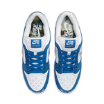 The Born x Raised One Block At A Time Nike SB Dunk Low, released on September 28, 2023, brings LA's street culture to life. Featuring a Deep Royal Blue and White colorway, the sneaker blends premium leather and nubuck with silver detailing on the Nike Swoosh and heel tab. The phrase "One Block At a Time" is embroidered on the mudguard, while "On The Turf" appears on the heel, accompanied by an additional Swoosh on the midsole.This collaboration with the iconic LA brand Born x Raised combines heritage with a forward-looking design, offering both style and comfort, the shoe stands as a statement piece, fusing streetwear and sneaker culture.