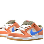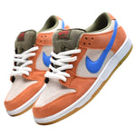The Nike SB Dunk Low Corduroy Dusty Peach brings a refreshing take on a classic design, perfect for skateboarders and sneaker enthusiasts alike. Featuring a soft peach-colored corduroy upper, this sneaker is complemented by brown accents and a bold blue Nike "Swoosh" for a pop of contrast. The clean white midsole balances the color palette, while the gum sole provides added traction and durability. Released in April 2019, these sneakers combines style, comfort, and performance for skateboarding and casual wear.