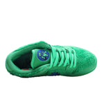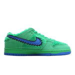 The Nike SB Dunk Low Grateful Dead Bears Green released in July 2020, is a bold collaboration between Nike Skateboarding and the legendary psychedelic rock band Grateful Dead. Drawing inspiration from the iconic dancing bears illustrated by Bob Thomas in 1973, this sneaker features a vibrant green faux-fur upper with tonal suede overlays, evoking the playful and fuzzy appearance of the Grateful Dead Bears. A jagged Nike Swoosh mimics the bears' chest fur, adding to the unique visual theme. Hidden inside the tongue is a stash pocket for discreet storage. Completing the design are a green midsole, contrasting blue outsole, and Grateful Dead branding on the tongue.