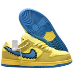 The Nike SB Dunk Low Grateful Dead Bears Yellow, released in July 2020, is a vibrant collaboration between Nike Skateboarding and the iconic psychedelic rock band Grateful Dead. Paying tribute to the Grateful Dead Bears, stylized dancing characters created by Bob Thomas in 1973, this sneaker boasts a fuzzy yellow faux-fur upper with suede overlays and a jagged Swoosh, mirroring the bear's chest fur. A hidden stash pocket inside the tongue adds functionality, while the yellow midsole, blue outsole, and Grateful Dead branding on the tongue complete the playful and eye-catching design.