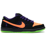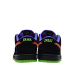 Nike SB embraced the Halloween spirit with the release of the SB Dunk Low *Night of Mischief*, a spooky-themed sneaker that quickly became a seasonal favorite. Drenched in festive details, the shoe features a black suede upper paired with an orange tumbled leather toe box designed with Jack-O-Lantern-style perforations. Embroidered spider webs crawl across the upper, while the insoles showcase a gooey pumpkin guts graphic. Playful touches like “Trick- and “Treat- stitched onto the heel tabs, neon green accents, and a glow-in-the-dark outsole add to its hauntingly fun vibe. Released in October 2019, this Halloween edition cemented itself as one of the most iconic holiday SBs to date.