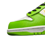 Supreme and Nike SB introduced a fresh addition to their collaboration lineup with the Nike SB Dunk Low Supreme Mean Green. This design is a nod to one of the most iconic SB Dunk Highs ever created, the 2003 Nike SB Dunk High Supreme. The 2021 edition brings a new twist to the classic, offering a reimagined color palette and silhouette. The upper features white leather paired with Mean Green faux croc skin overlays, accented by gold stars printed along the center side panel. A standout feature is the bold Nike branding on the overstuffed tongue and heel patch, complemented by a gold metallic Supreme débré. The design is completed with a white midsole and Mean Green outsole, perfectly balancing style and streetwear flair. Released in March 2021, the Nike SB Dunk Low Supreme Mean Green quickly became a favorite among sneakerheads and skate enthusiasts alike, cementing its place in the legacy of Supreme's collaborative SB Dunks.