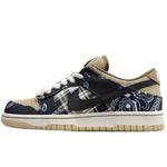 The Travis Scott x Nike SB Dunk Low PRM QS "Cactus Jack - Special Box" combines Travis Scott's signature design with the iconic Nike SB Dunk Low. The sneaker features a suede and leather upper, embellished with paisley and plaid patterns that embody Scott's unique style. Over time, the paisley design fades to reveal an underlying elephant print, adding a surprising element to the shoe's look.Packaged in a custom box that mirrors the shoe's design, this special edition includes rope laces, a Cactus Jack logo on the tongue, and embroidered details on the collar. Released on February 22, 2020, this limited-edition sneaker was exclusively available through Travis Scott's online store.
