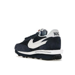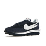 The Nike LDWaffle SF Sacai x Fragment "Blue Void" is a collaborative design that fuses Sacai's and Fragment's unique styles. Released on August 27, 2021, the sneaker showcases a Blue Void mesh upper with Obsidian and White suede overlays. White leather dual Swooshes decorate the sides, while co-branding from Sacai and Fragment appears on the heel tab and midsole. The shoe is finished with double tongues, layered laces, and a black waffle rubber outsole for improved traction.