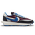 "‹The Nike LDWaffle Sacai x Undercover "Night Maroon Team Royal" is a triple collaboration that reimagines Nike's vintage running heritage through a modern, layered lens. Released on October 29, 2021, this hybrid silhouette combines elements from the LDV and Waffle Racer. It features a Night Maroon nylon upper with black and royal blue leather overlays, complemented by grey hairy suede accents. Signature dual Swooshes in blue leather and off-white suede adorn the sides, while the double-stacked tongues and midsoles showcase Sacai's deconstructed aesthetic. Co-branding from Nike, Sacai, and Undercover appears on the heel tab and extended heel piece. The design is completed with a blue waffle-traction rubber outsole for optimal grip.