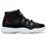The Air Jordan 11 Retro 72-10 pays homage to Michael Jordan's legendary 1995-96 Chicago Bulls season, where they finished with a 72-10 record. The sneaker features a premium tumbled leather upper, complemented by microfiber suede and the iconic patent leather mudguard. A gym red Jumpman logo is prominently displayed on both the heel and tongue, while the red and black carbon fiber shank plate adds a touch of elegance. The design is completed with a white Phylon midsole, full-length Air-sole cushioning, and a translucent rubber outsole. The Air Jordan 11 Retro 72-10 was released on December 12 2015.